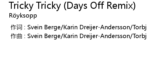 | [00:00.000] | 作曲 : Svein Berge/Karin Dreijer-Andersson/Torbjorn Brundtland |