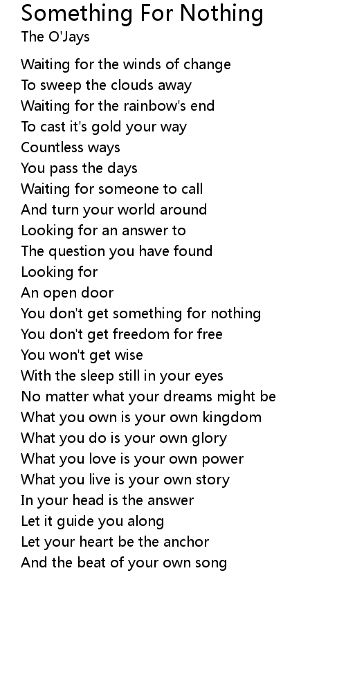 You don't get something for nothing |