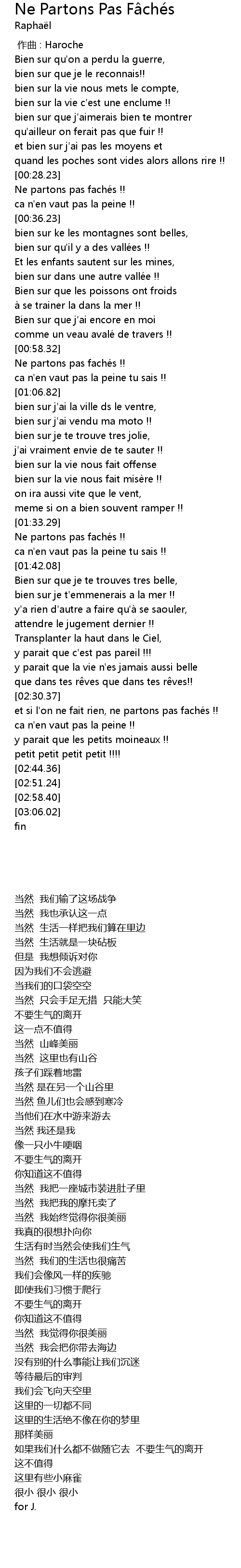 | [02:32.29] | et si l' on ne fait rien, ne partons pas fache s !! |