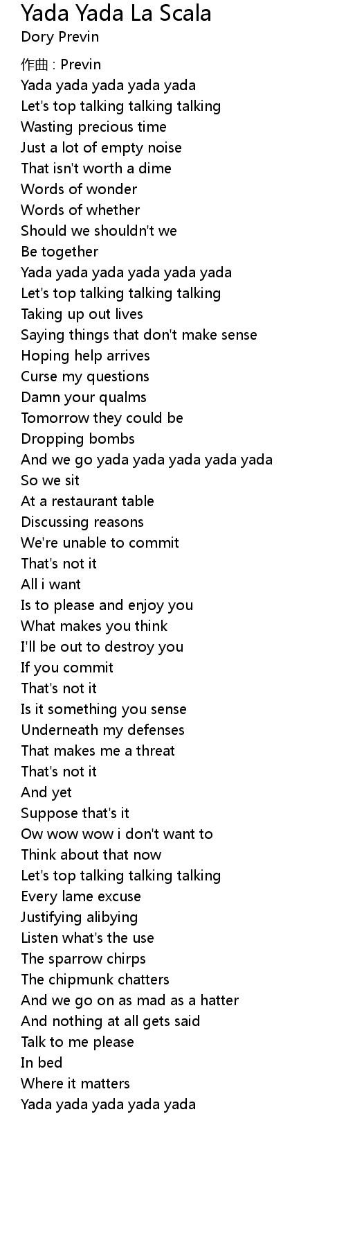 | Song | Yada Yada La Scala |