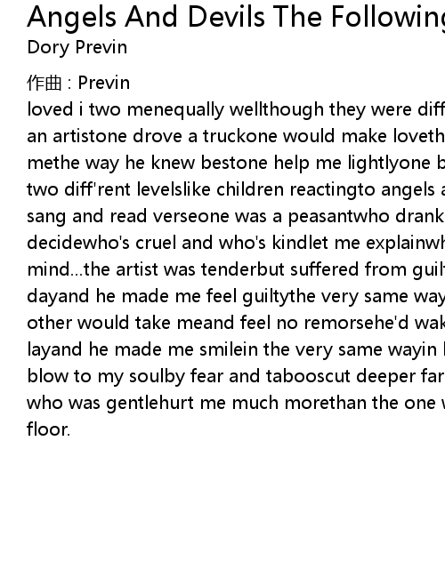 | Song | Angels And Devils The Following Day |