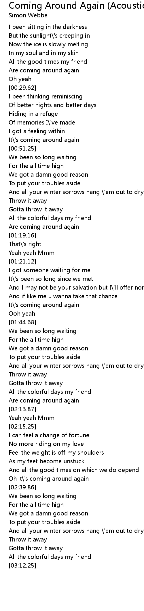 Oh it\'s coming around again |