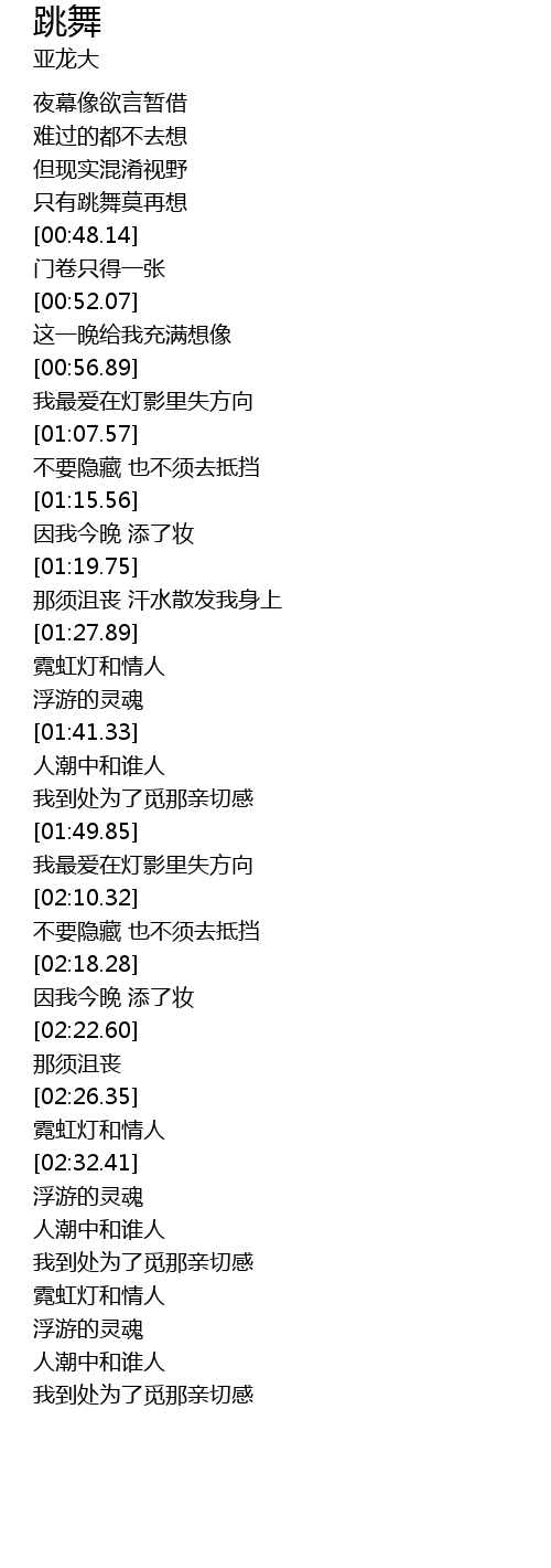 | [00:43.77] | 只有跳舞莫再想 |