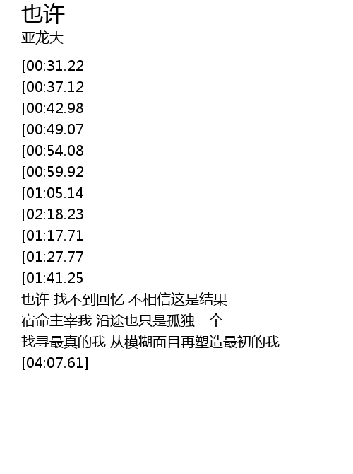 | [02:27.97][01:17.71] | 也许 找不到回忆 羞愧过往的错 |