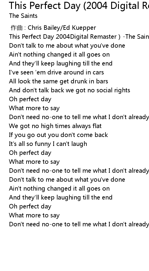 | [00:00.360] | This Perfect Day 2004Digital Remaster The Saints |