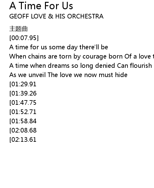 | [01:11.05][01:58.84] | A time for us someday there' ll be a new world |