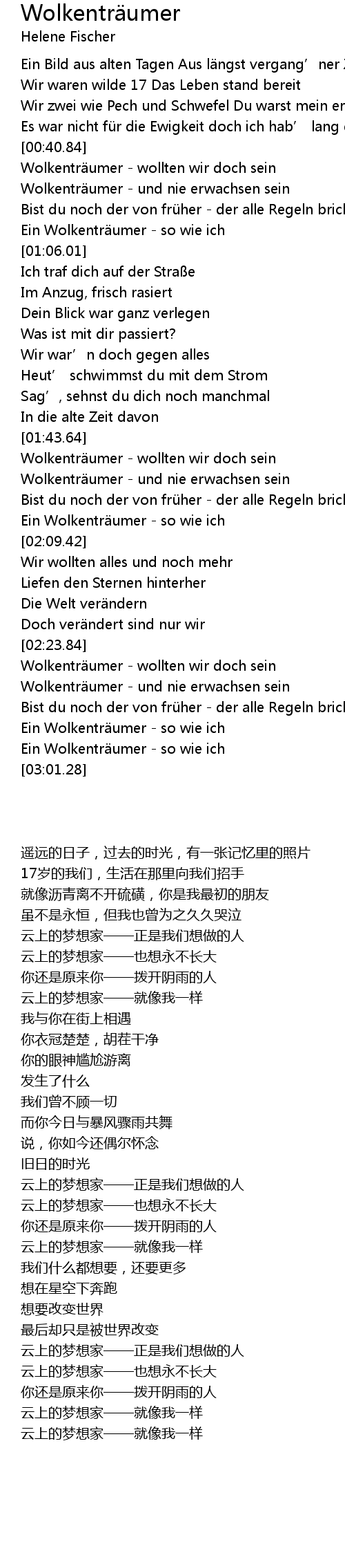 | [02:54.49] | Ein Wolkentr umer so wie ich |