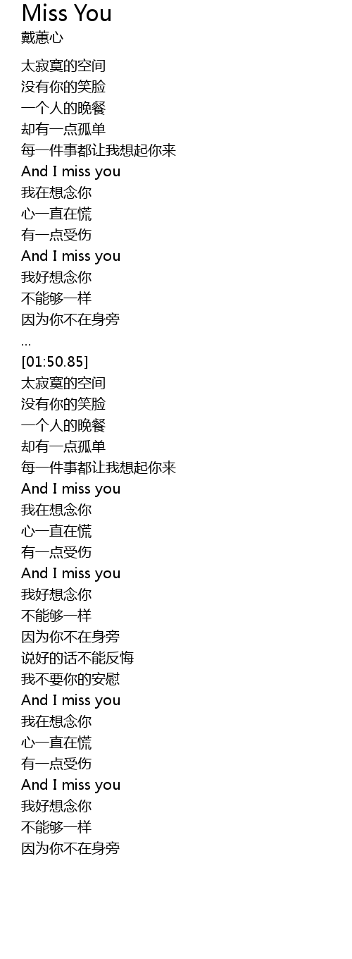 | [03:23.73] | And I miss you |