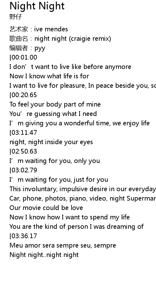 | [00:-0.50] | 歌曲名:night night (craigie remix) |
