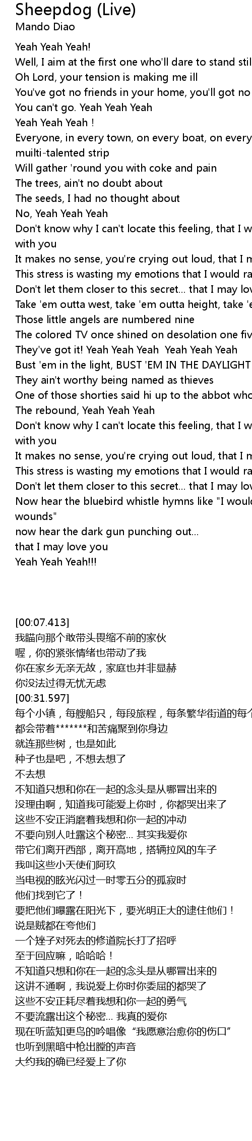 | [00:29.605] | You can't go. Yeah Yeah Yeah |