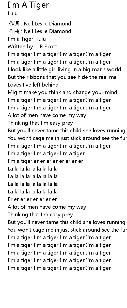 | [00:00.00] | I' m a Tiger lulu |