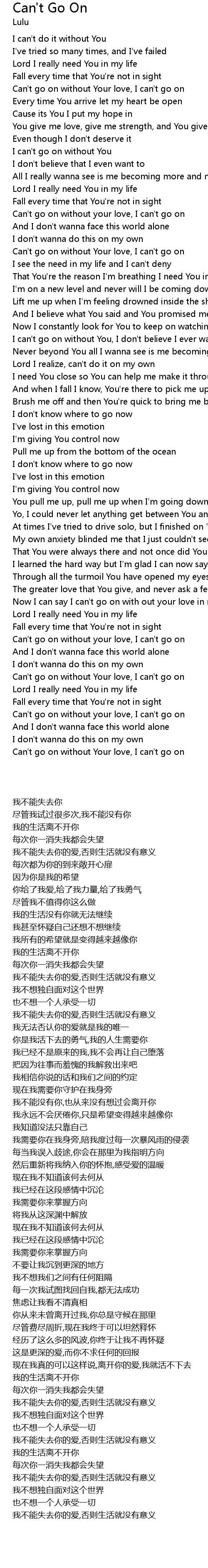 Can't go on without Your love, I can't go on |