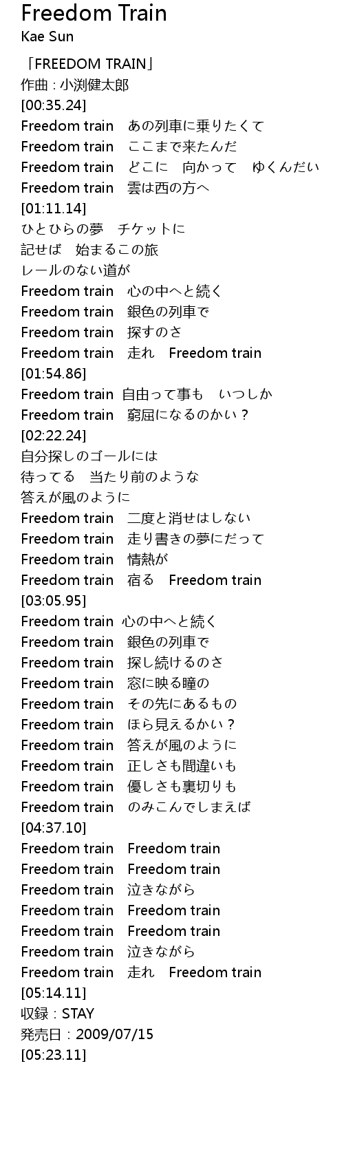 | [03:53.77] | Freedom train 心の中へと続く |