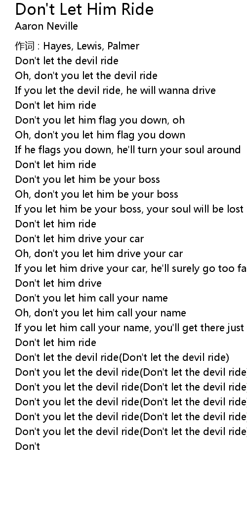 | Don' t you let the devil ride Don' t let the devil ride | |