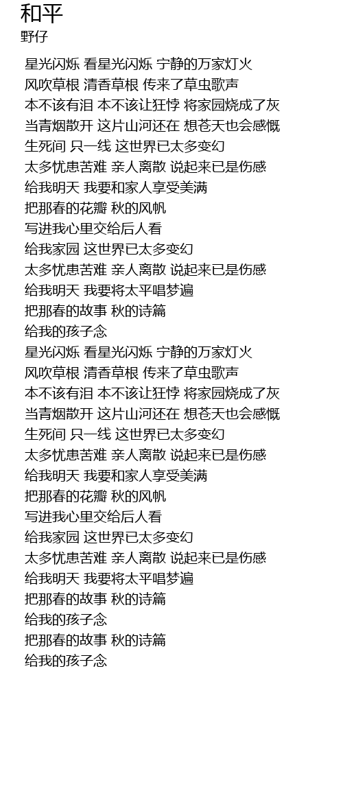 | 给我家园 这世界已太多变幻 | |