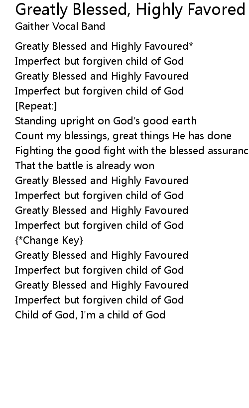 Greatly Blessed and Highly Favoured |