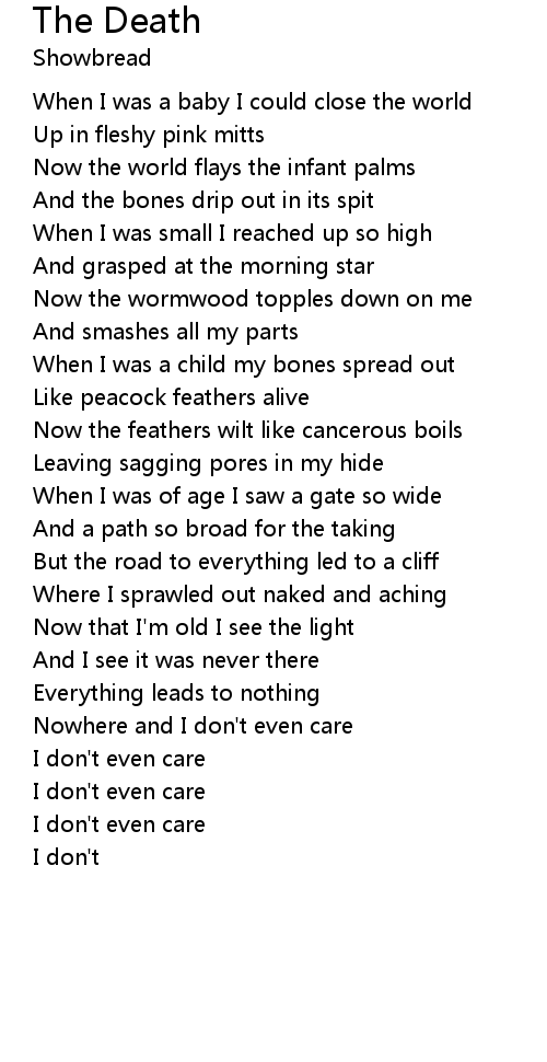 | Where I sprawled out naked and aching | |