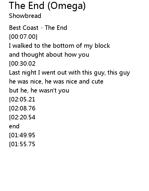 | [02:27.70][02:20.54][01:29.38][01:21.77] | the end, til the end, the end, til the end |