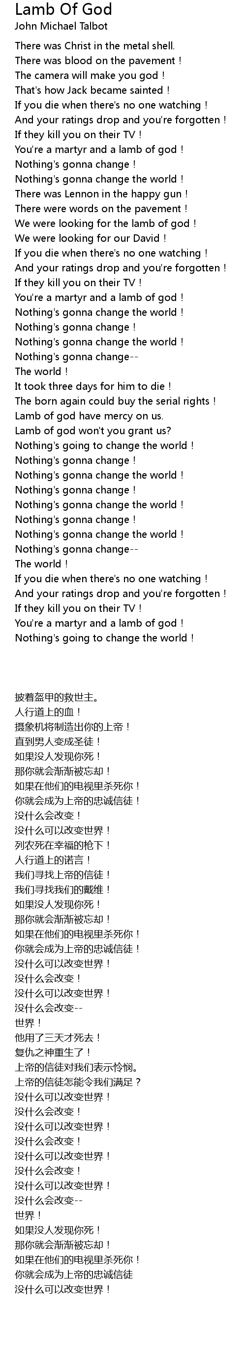 | [02:00.020] | You're a martyr and a lamb of god! |