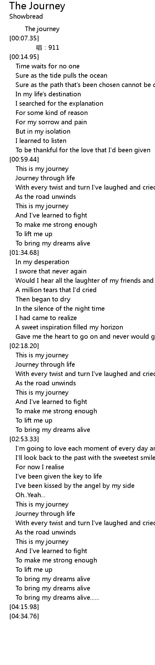 | [03:33.66] | With every twist and turn I've laughed and cried |