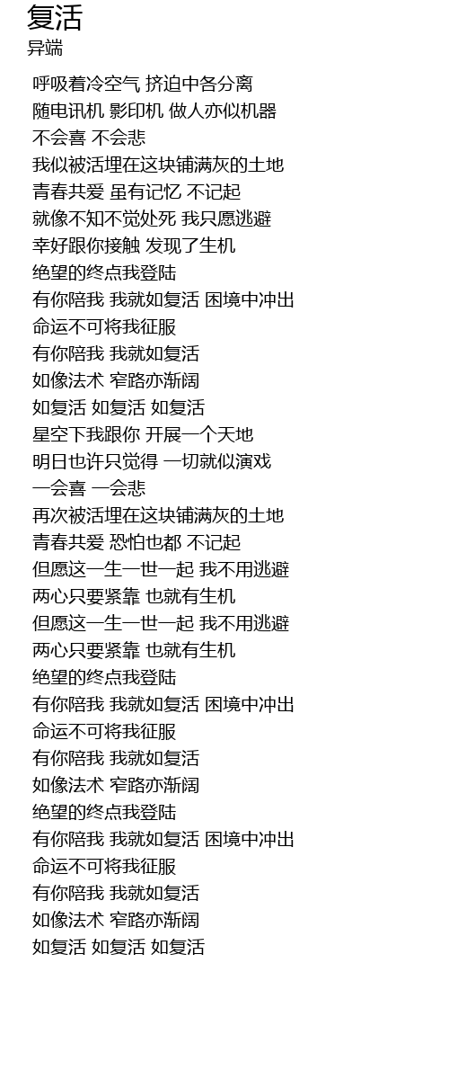 | [03:15.580] | 有你陪我 我就如复活 困境中冲出 |