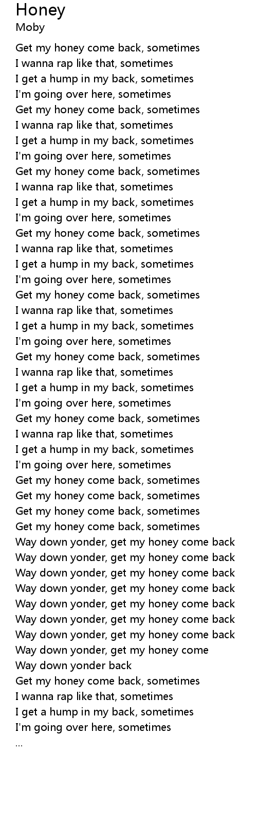 | Get my honey come back, sometimes | |