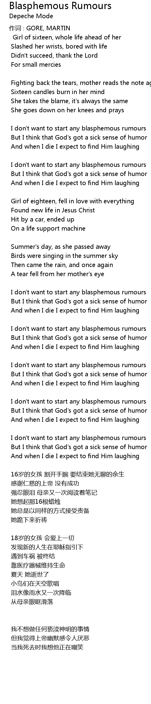 | 作词 : GORE, MARTIN | |