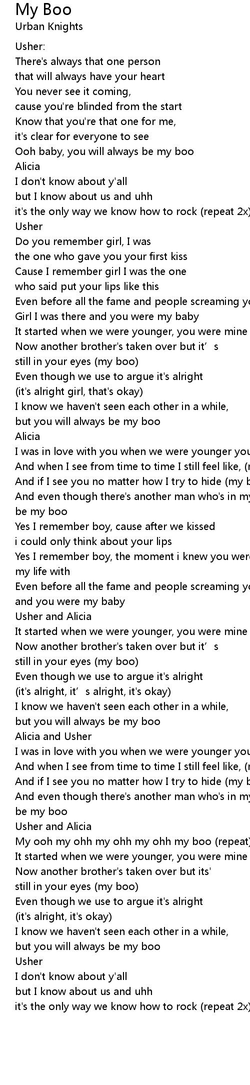 | [02:02.36] | Usher and Alicia |