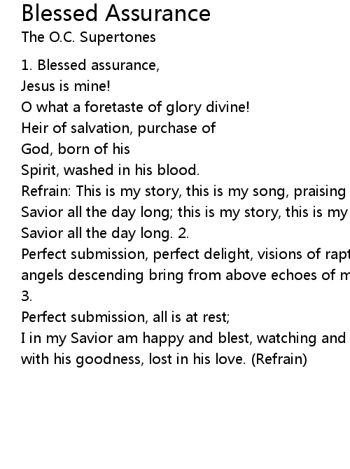 I in my Savior am happy and blest, watching and waiting, looking above, filled with his goodness, lost in his love. (Refrain) |