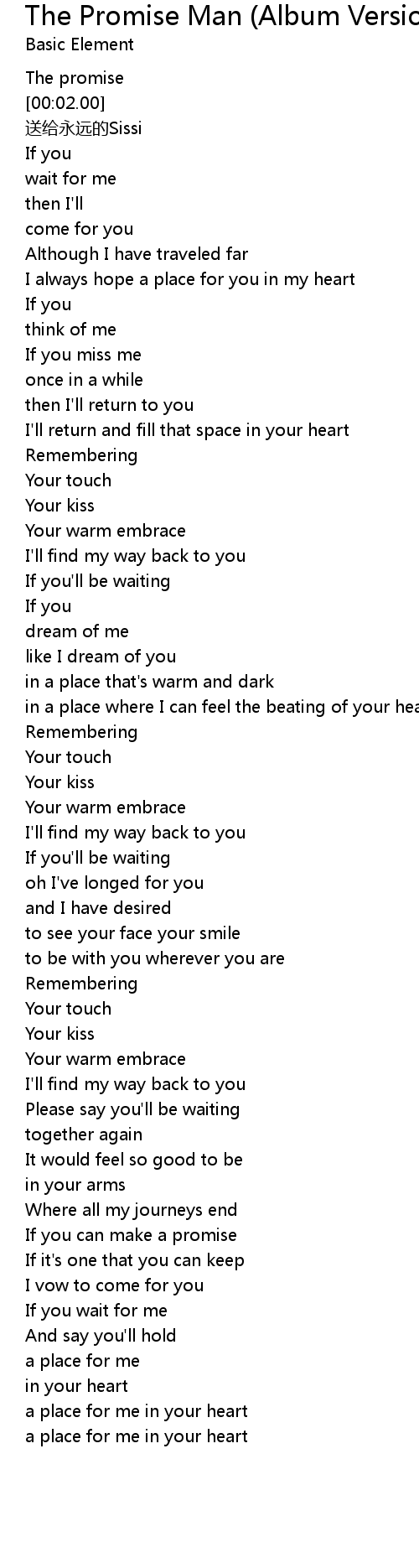 | [01:13.00] | I' ll return and fill that space in your heart |