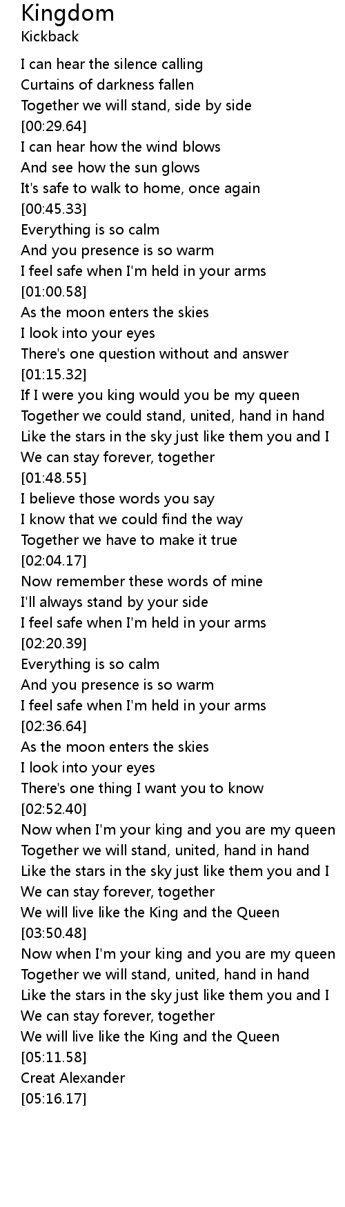 Now when I'm your king and you are my queen |