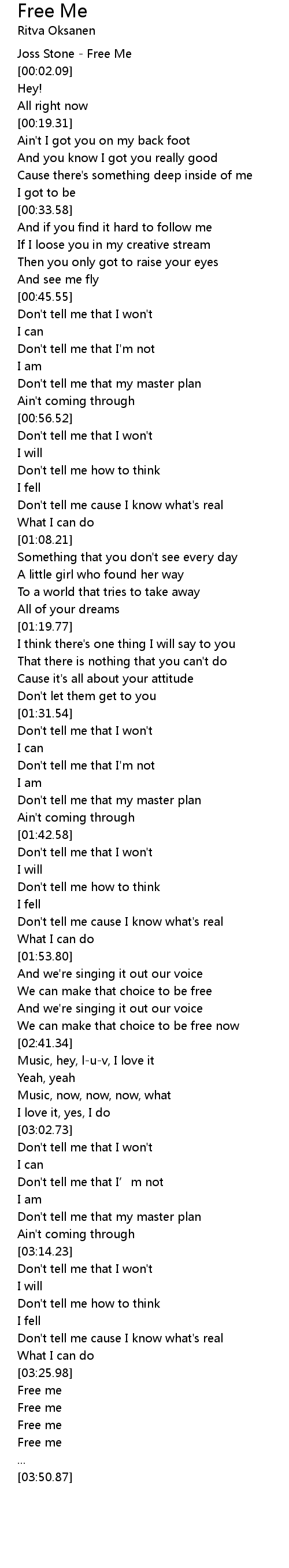 | [00:00.66] | Joss Stone - Free Me |