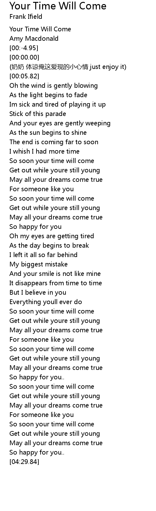 | [03:35.80] | So soon your time will come |