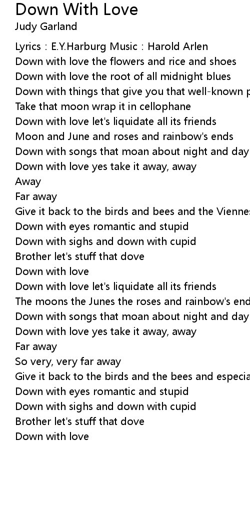 | Down with love yes take it away, away | |