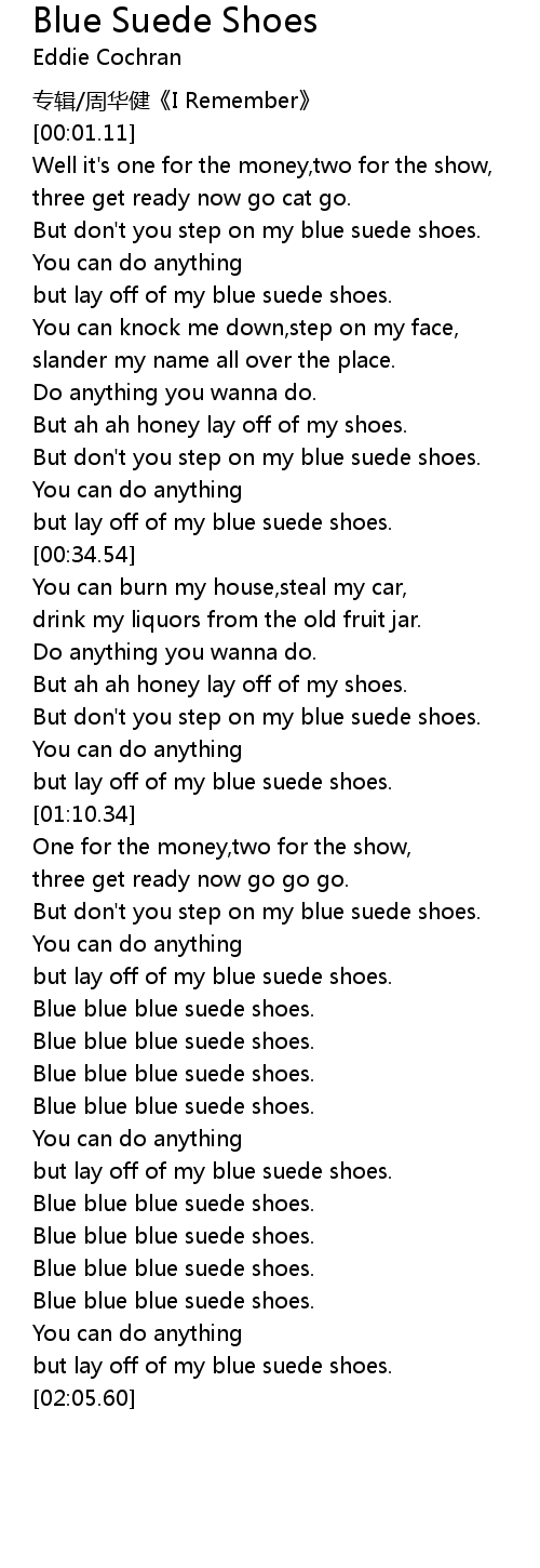 | [00:58.76] | But don' t you step on my blue suede shoes. |