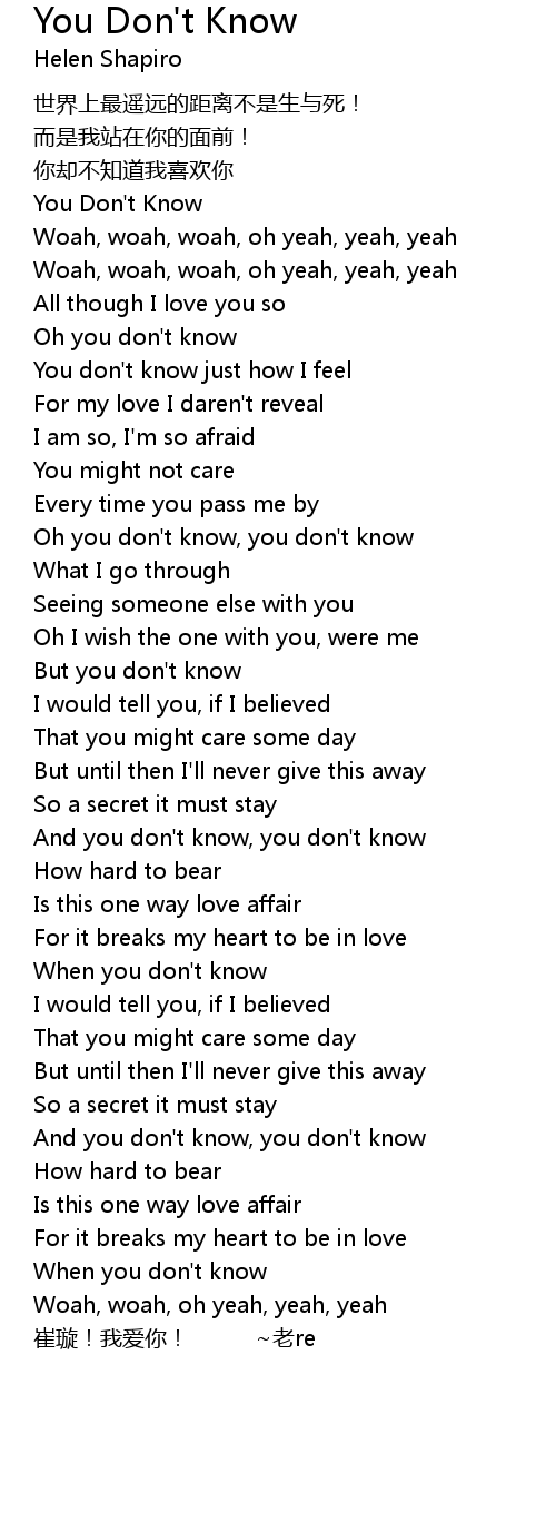 | [00:20.36] | Oh you don' t know |