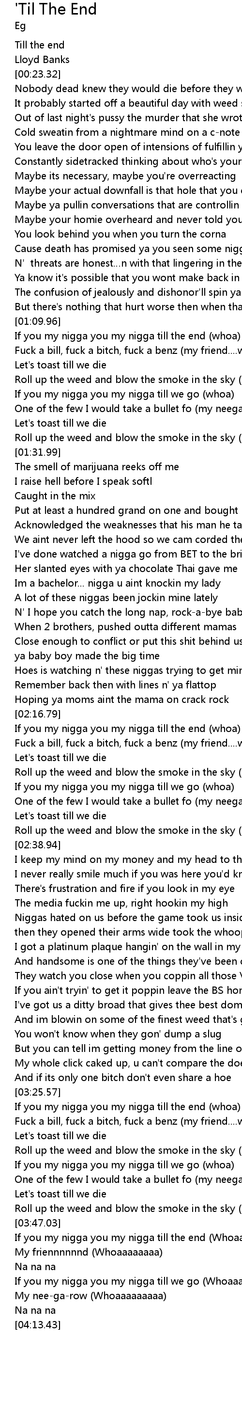 | [03:25.88] | If you my nigga you my nigga till the end whoa |