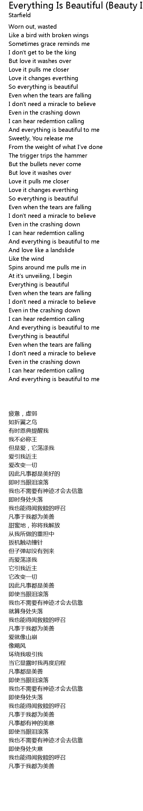 And everything is beautiful to me |