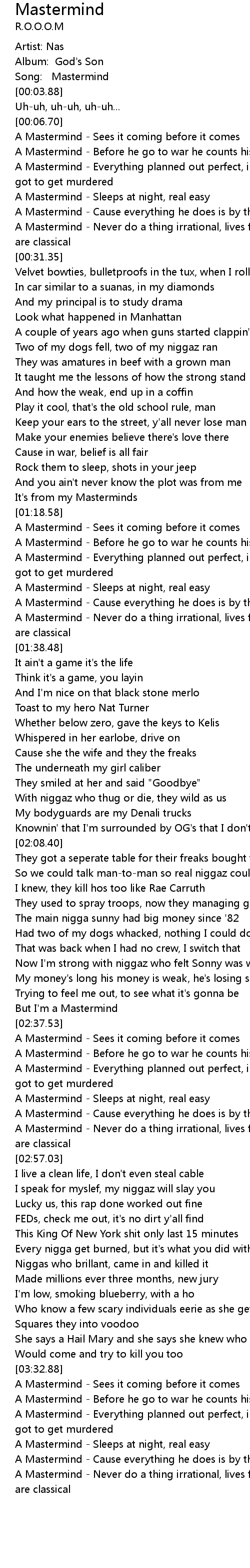 [03:39.24] A Mastermind - Everything planned out perfect, in case y'all niggaz got to get murdered