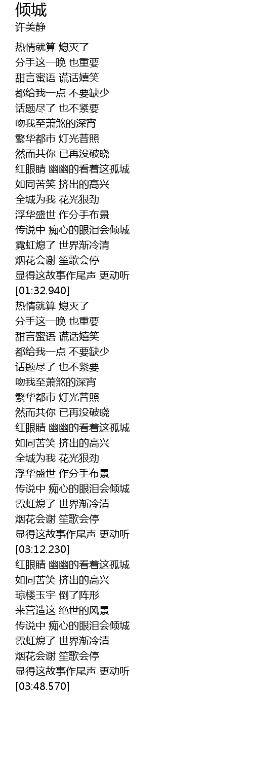 | [03:31.560] | 传说中 痴心的眼泪会倾城 |