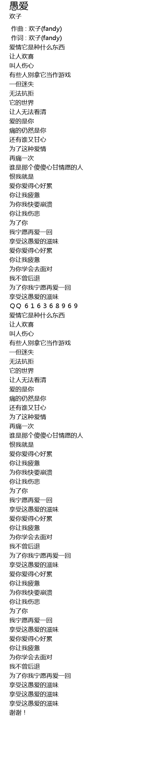 | [00:01.00] | 作词 : 欢子(fandy) |