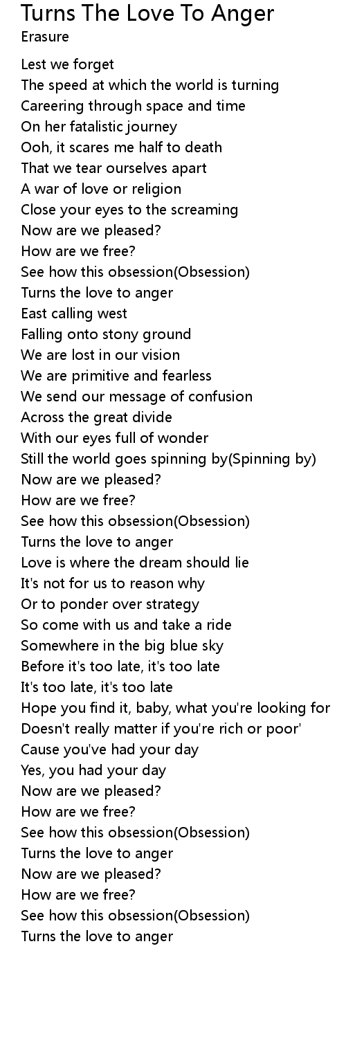 | Turns the love to anger |