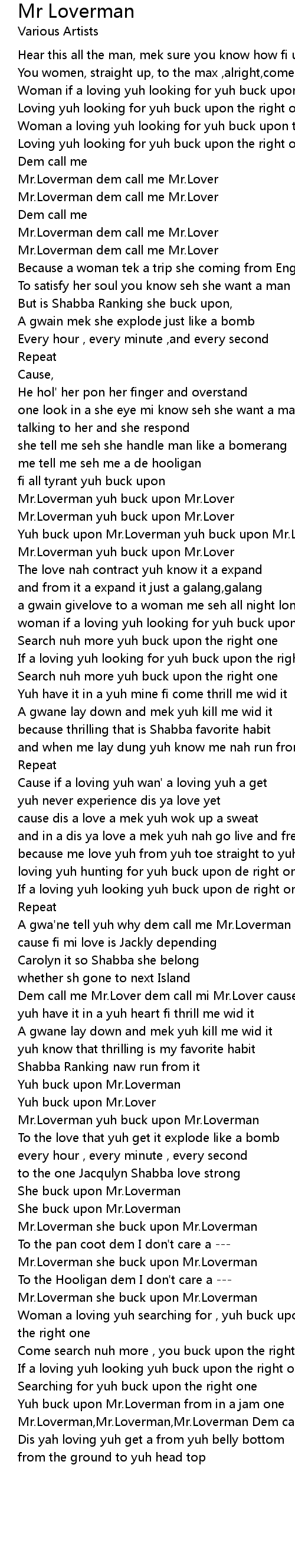 Yuh buck upon Mr.Loverman yuh buck upon Mr.Lover |