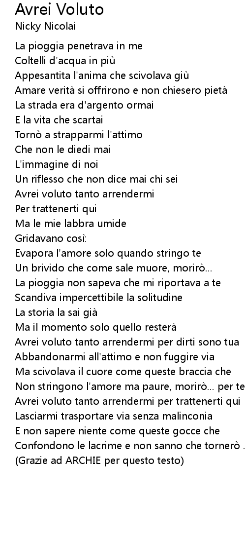 | Song | Avrei Voluto |
