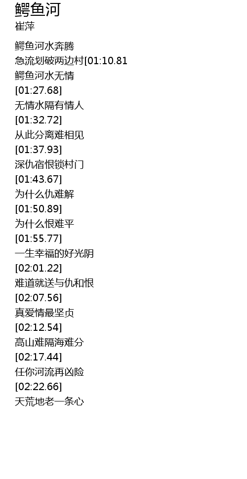 | [01:23.23] | 鳄鱼河水无情 |