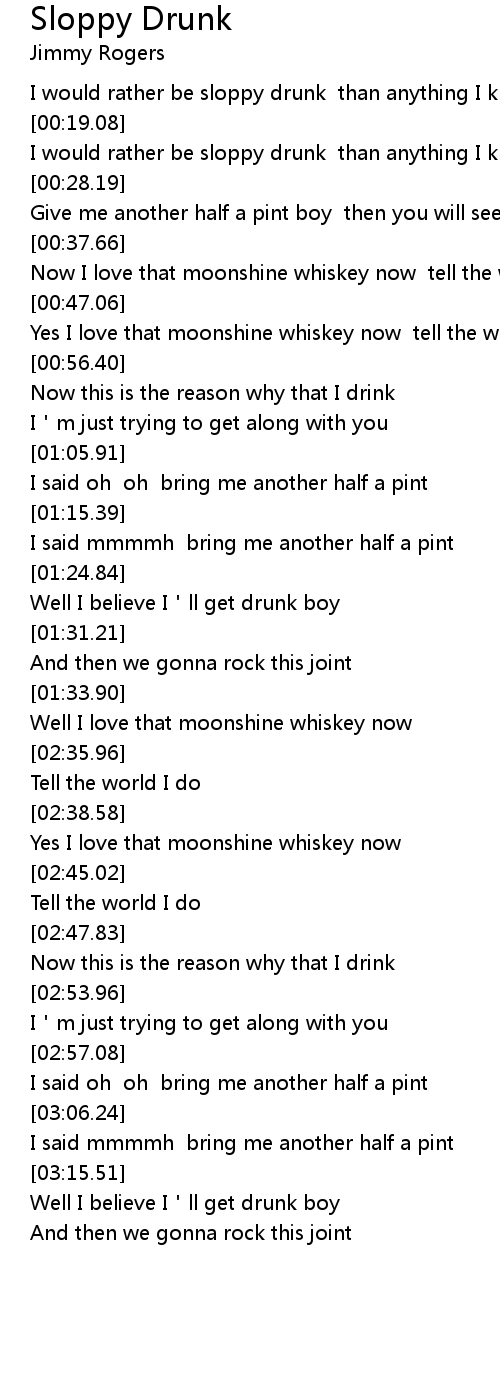 | [00:22.99] | I would rather be sloppy drunk than anything I know |