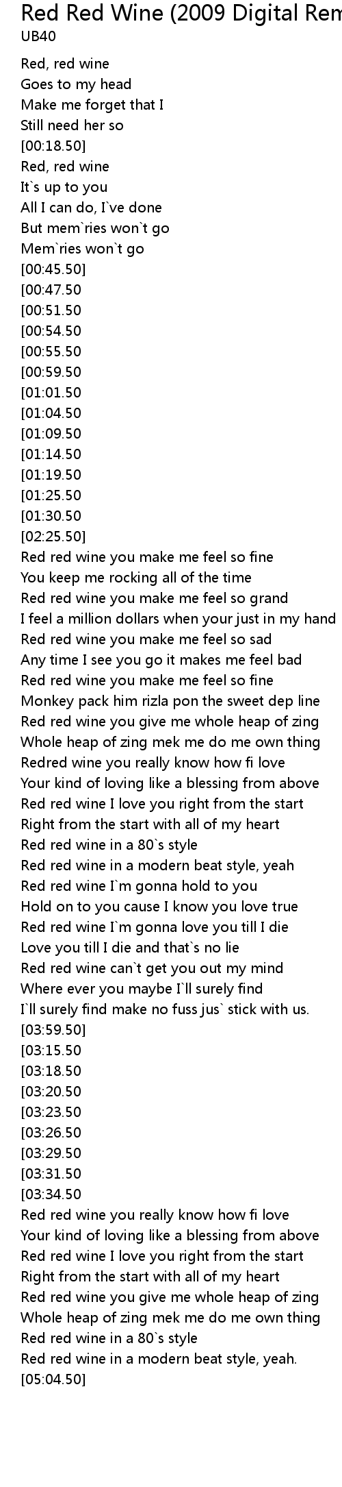 [04:19.50][03:26.50] Red red wine you make me feel so fine