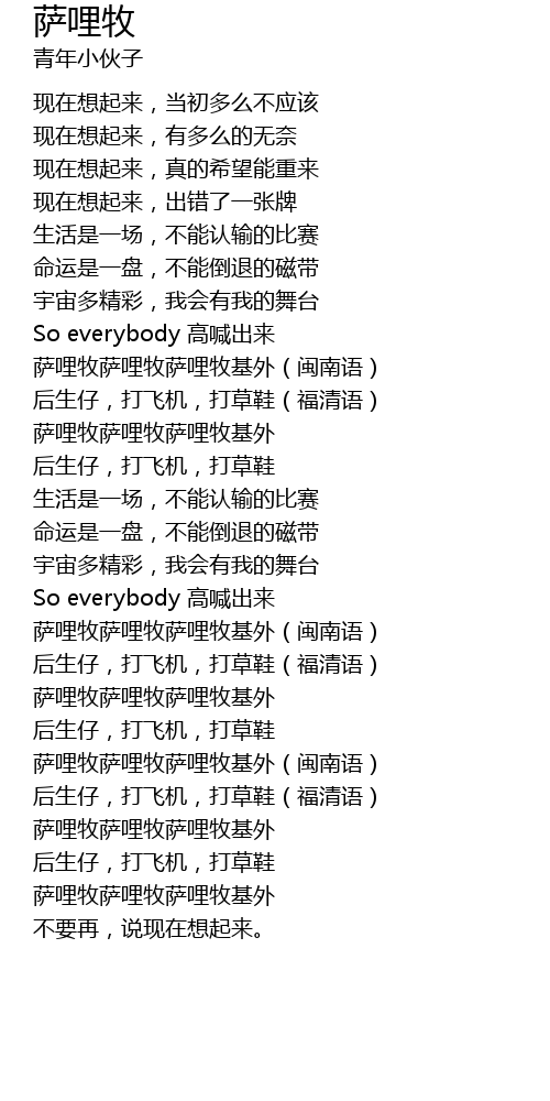 | [02:51.900] | 萨哩牧萨哩牧萨哩牧基外(闽南语) |