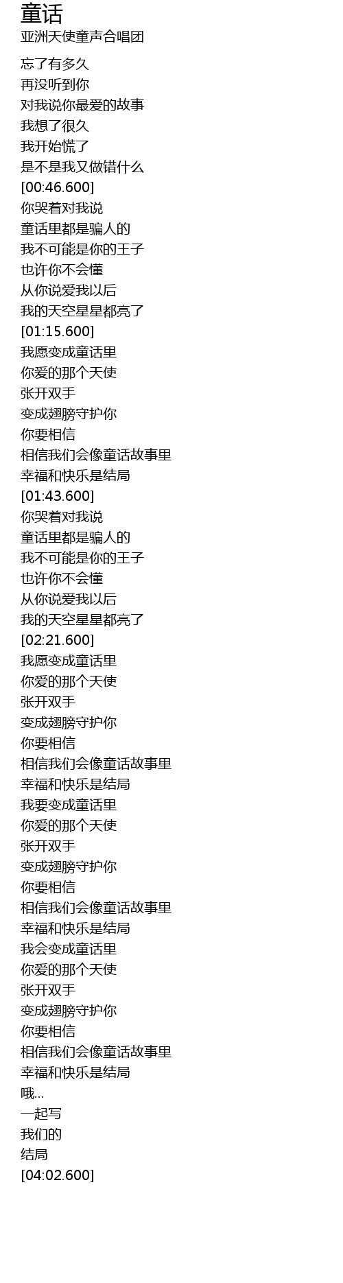 | [02:38.600] | xiang xin wo men hui xiang tong hua gu shi li |