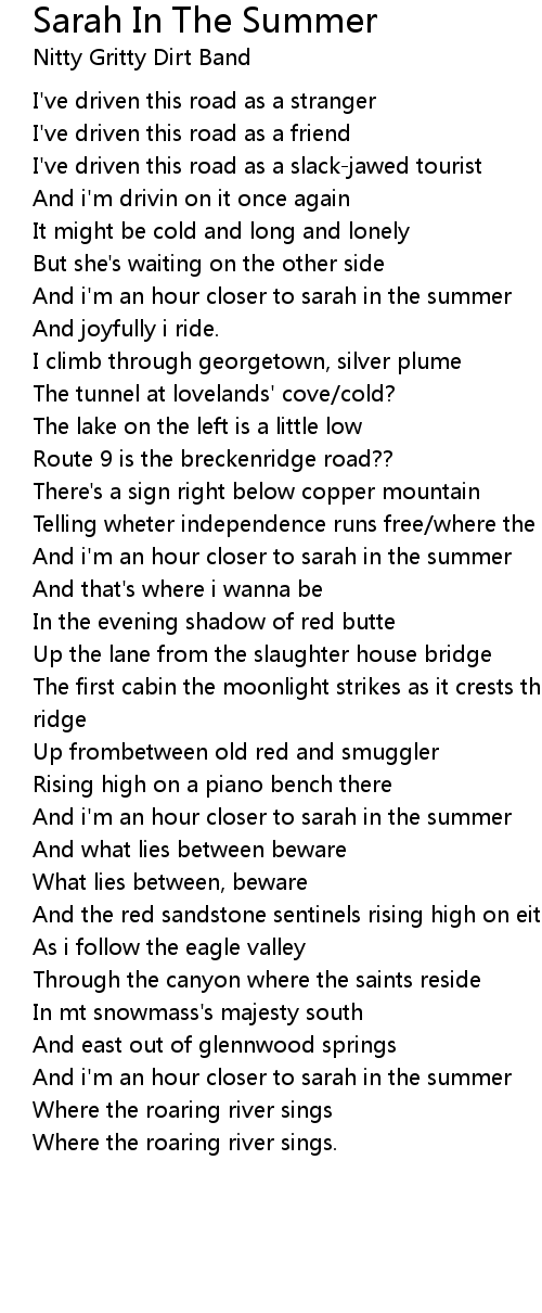 And i'm an hour closer to sarah in the summer |
